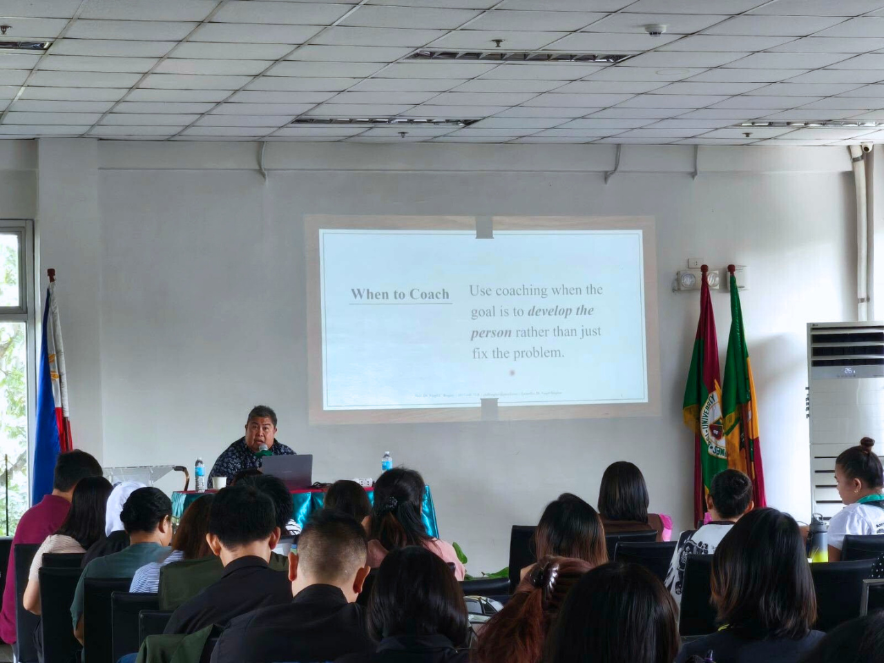 The seminar-workshop then commenced with a 10-minute pre-test. Following this, Dr. Virgel C. Binghay (CIPC Director, QA Officer, and UP Professor 12) skillfully led the main session, delivering an engaging and practical discussion focused on applying coaching principles in organizational environments.
