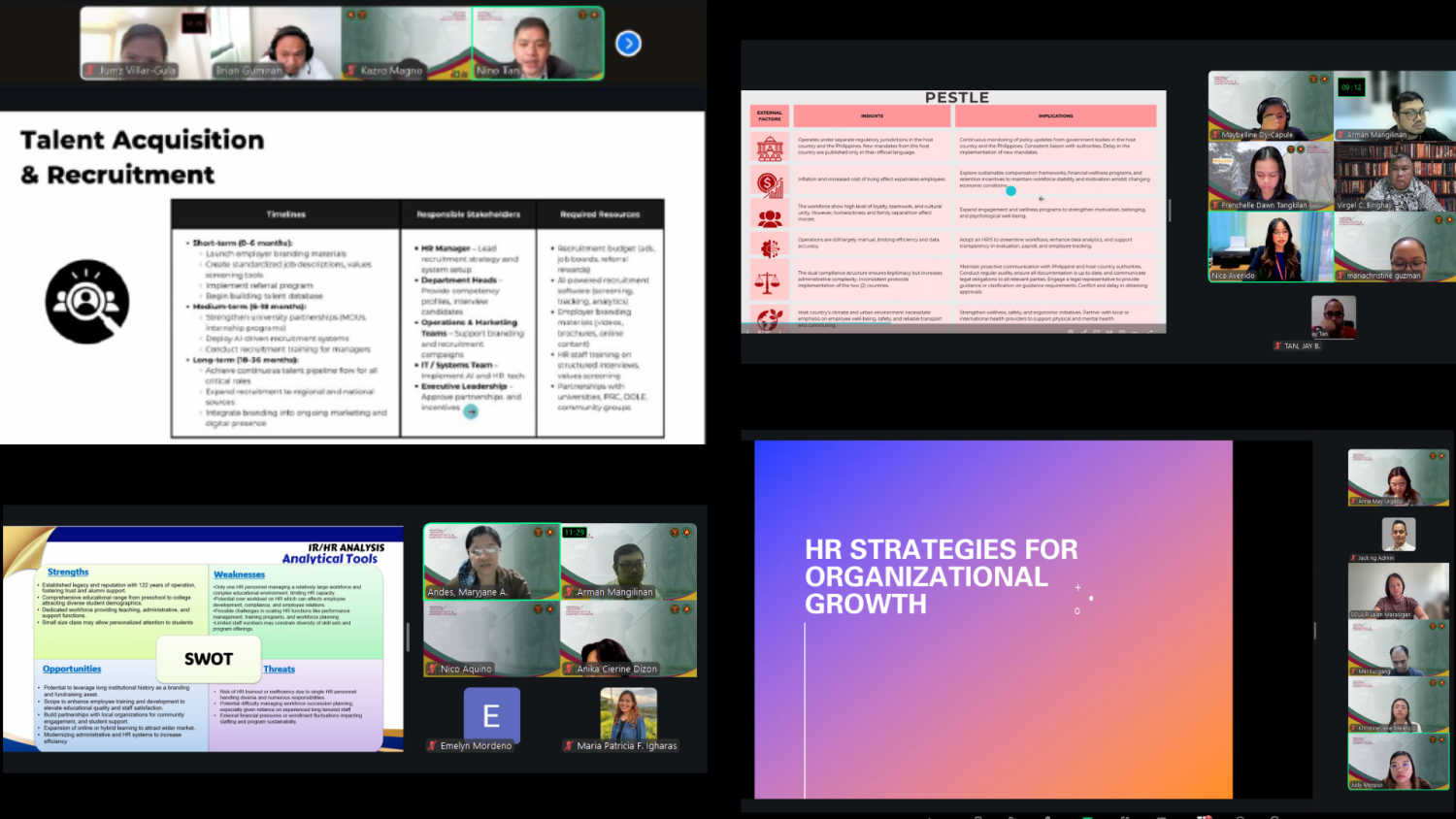 Each group received in-depth critique and mentoring from distinguished panelists, including previous resource speakers of the certificate course’s lectures, joining with Asst. Prof. Mary Leian M. Pasumbal, former Senior Research and Extension Specialist and now UP SOLAIR faculty member, and guest critic Dr. Oliver C. Requilman of De La Salle University Manila, a Certified Total Rewards Specialist (ASEAN Institute of Total Rewards, Singapore) and Certified Professional HR (CPHR). Their addition to the experts provided participants with invaluable feedback to strengthen their organizational recommendations.